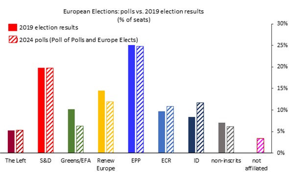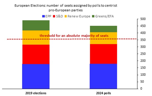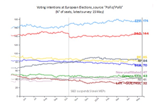 In essence, the picture drawn by the polls outlines a more fragmented and a more right-leaning Parliament than the previous one, although the resilience of the centrist pro-Europe parties should guarantee overall continuity to the European agenda, if not for a softening (already under way, in fact), of the goals imposed by the Green Transition, and greater focus on themes such as common defence, security, illegal immigration containment, and the competitiveness of European industry to counter the challenges from China and the US.