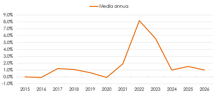 Lungo l’orizzonte temporale 2015 – 2026 possiamo identificare due diversi andamenti dell’inflazione: